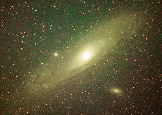 望遠鏡を覗いたときのイメージは加工前の写真のように色彩が希薄です。